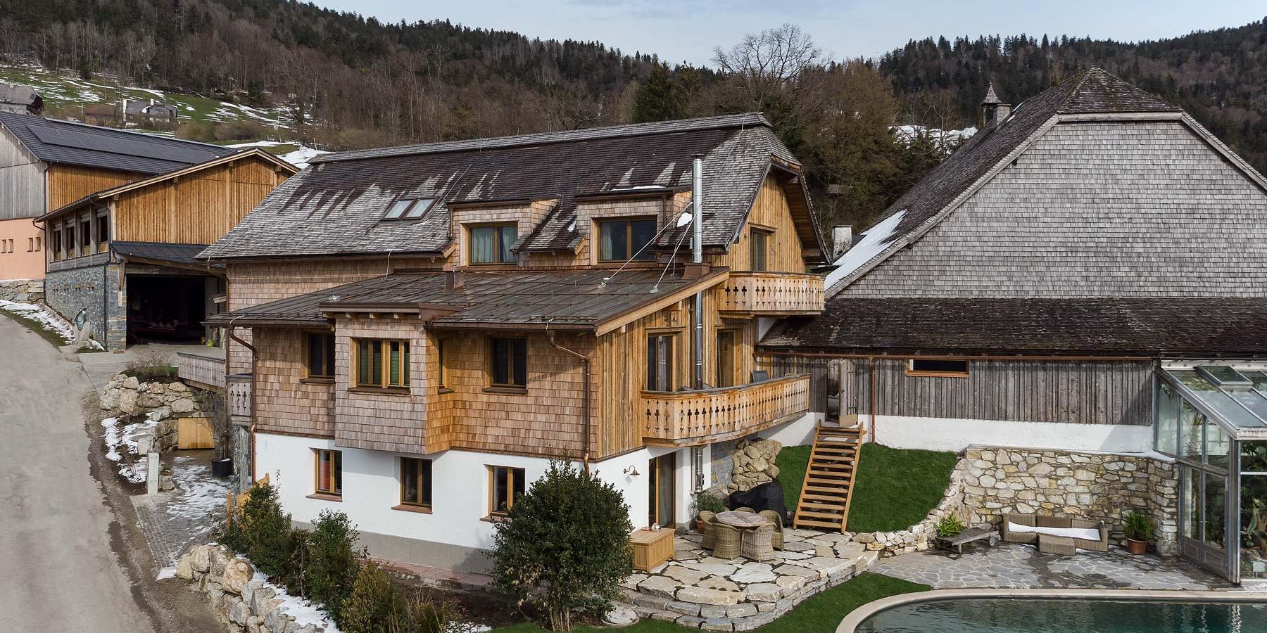 Am Gaisberg, hoch über Salzburg, liegt das Refugium von Manuela und Josef Radauer. Der Blick hinunter auf die Stadt ist atemberaubend, der Blick hinein in die mit geschichtsträchtigem Altholz veredelten Räume ebenfalls. Das Faible für besondere Hölzer kommt nicht von ungefähr: Josef Radauer betreibt die Landschaftspflege-Firma TREES und ist quasi von Berufs wegen mit Holz auf Du und Du. Gemeinsam mit Frau Manuela und ihren vier Söhnen führen sie außerdem einen Bio-Bauernhof und eine Privatschule. In der kleinen Waldorfschule „Tiere hautnah – Schule für das Leben“ bieten sie tiergestützte Pädagogik und vermitteln Schülern der 1. bis 9. Schulstufe unter anderem den Jahreskreislauf der Landwirtschaft.