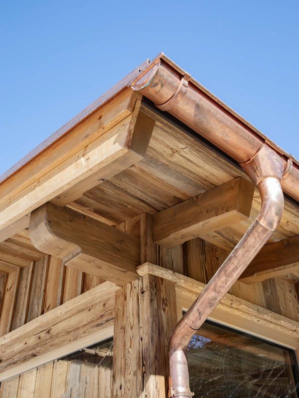 Aufgrund der besonderen Lage des Grundstücks wurde das Haus dem Grund angepasst und nach vorne hin schmäler gebaut. Viel Licht zeichnet die Wohnräume aus, große Terrassen und eine Dachterrasse runden das Konzept ab. Im Inneren des modernen Baumhauses dominieren Holz, Glas und Sichtbeton. Geheizt werden die drei Geschoße, die auf rund 185 m² Wohnfläche verteilt sind, mit einer Erdwärmepumpe. Auch außen wurde der Naturaspekt konsequent umgesetzt – mit Holzschindeln. „Meine Architektin hat zu mir gesagt: Holzschindeln sind wie ein Kleid für ein Gebäude“, erinnert sich Toni und lächelt. „Diese Vorstellung hat mir sehr gut gefallen. Und bei einem Holzbau sind Schindeln einfach sehr schön. Mir war aber wichtig, dass die Schindeln genau zur Hausgröße passen. Auch da hat mich Matthias perfekt beraten.“