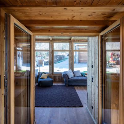Am Gaisberg, hoch über Salzburg, liegt das Refugium von Manuela und Josef Radauer. Der Blick hinunter auf die Stadt ist atemberaubend, der Blick hinein in die mit geschichtsträchtigem Altholz veredelten Räume ebenfalls. Das Faible für besondere Hölzer kommt nicht von ungefähr: Josef Radauer betreibt die Landschaftspflege-Firma TREES und ist quasi von Berufs wegen mit Holz auf Du und Du. Gemeinsam mit Frau Manuela und ihren vier Söhnen führen sie außerdem einen Bio-Bauernhof und eine Privatschule. In der kleinen Waldorfschule „Tiere hautnah – Schule für das Leben“ bieten sie tiergestützte Pädagogik und vermitteln Schülern der 1. bis 9. Schulstufe unter anderem den Jahreskreislauf der Landwirtschaft.