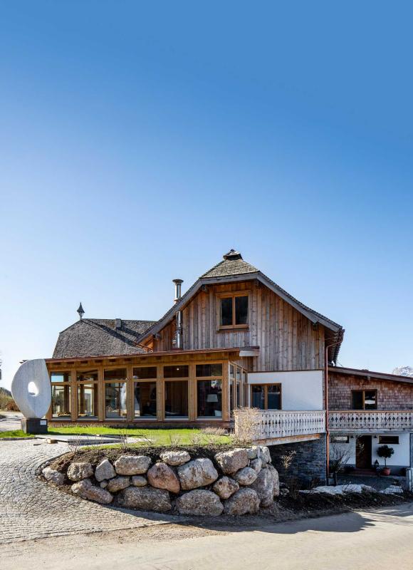 Weil ein Generationenwechsel vor der Tür stand, entschieden sich Manuela und Josef dafür, ins Austragshaus zu ziehen. Das ursprüngliche Austragshaus wurde vor einigen Jahren zum Schulgebäude umgebaut – also musste ein neues her. Das Ehepaar entschied sich schließlich dafür, die alten Ställe umzubauen. „Im ehemaligen Schweinestall befindet sich jetzt die Bibliothek, der Wintergarten und unser privater Wohnbereich, im alten Pferdestall das Bürogebäude“, erklärt Manuela. Viel Glas, um eine direkte Verbindung zur schönen Natur rund um den biologisch-dynamischen Bauernhof herzustellen, und viel Altholz – so präsentiert sich das fertige Bürogebäude heute dem Betrachter. Die Holzarbeiten im Innen- und Außenbereich wurden vom HOLZFORM-Team ausgeführt, die auch den einen oder anderen praktischen Tipp parat hatten.
