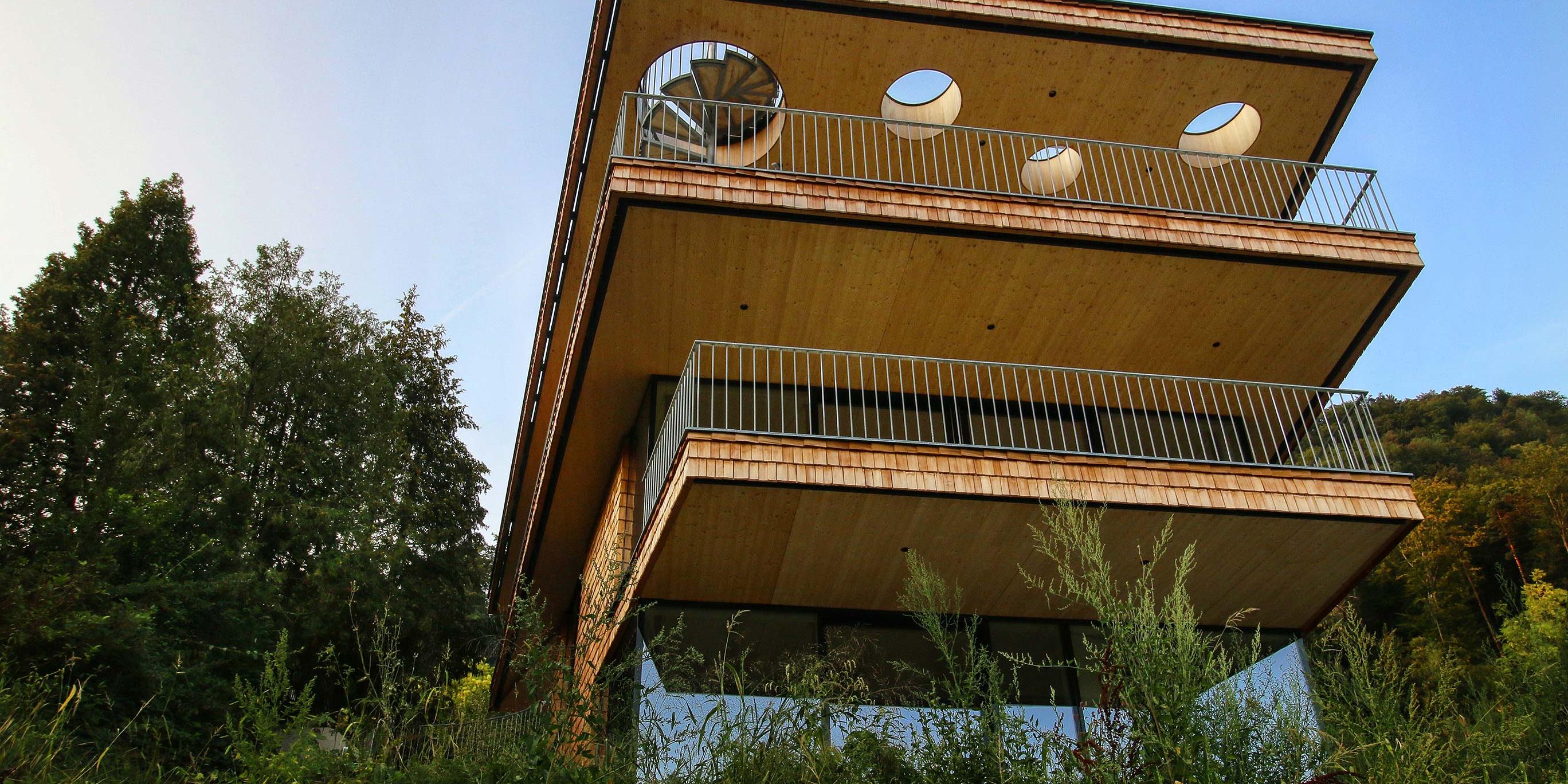 Eigentlich wollte Toni ein Baumhaus. Schon als Kind hat er davon geträumt, einmal hoch oben über den Dächern zu wohnen – luftig und frei. Mit Holzform ist sein Traum Wirklichkeit geworden. „Ich bin am Berg aufgewachsen“, sagt Toni. „Vielleicht kommt der Wunsch nach einem Baumhaus daher. Ich habe bei der Planung diese Idee jedenfalls aufgegriffen und weitergesponnen. Das Haus sollte naturverbunden sein, mit viel Glas. Und natürlich mit viel Holz.“ Auf Empfehlung seiner Architektin hat Toni Holzform kontaktiert. „Mit Matthias und seinem Team hat das alles von Anfang an wunderbar geklappt“, unterstreicht Toni, und fügt schmunzelnd hinzu: „Obwohl das Grundstück steil und eng ist und die Bauarbeiten dadurch kein Kinderspiel waren.“