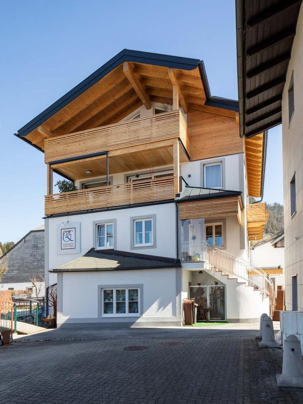 Dann konnte es aber losgehen. „Ein für uns sehr wichtiger Punkt war, dass Geschäft und Werkstatt während der Bauphase ungestört weiterlaufen konnten“, so Vitus Eder. „Das hat sehr gut funktioniert.“ Der Dachboden wurde zur Gänze abgebrochen und eine neue Massivholzdecke eingezogen. Anschließend wurde das Gebäude um ein Geschoß erhöht. „Diese Wohnung nutzt jetzt unser Sohn Vitus mit seiner Familie“, erklärt Vitus Senior. „Mir persönlich gefällt der Holztram besonders gut, der sich durchs Gebäude zieht. Auch die Eichenstiege im Wohnbereich, die als Raumteiler und Galerie dient, ist ein echter Hingucker.“ Seeseitig wurden außerdem großzügige Terrassen angebaut – mit herrlichem Blick in Richtung Fuschlsee.